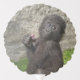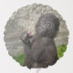 A cute baby gorilla with his fluffy hair having a piece of Red cabbage. Looking slightly to the side with his beautiful eyes.
