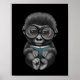 Cute Baby Gorilla Reading a Book on Black Poster