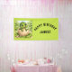 Create a fun and cheerful party with this adorable baby Dinosaur jungle banner! Featuring a smiling hatchling Dinosaur surrounded by lush greenery, this design brings a playful prehistoric vibe to a child's birthday party! It has a curved "Happy Birthday" wish and a place for a name -- both of which can be customized. They can say whatver you wish to change them to!