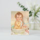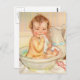 A charming vintage postcard featuring a cute baby having a bath in a bowl. Feel free to add a name, a date or any text you like.
