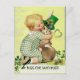 CUTE BABY HUGGING RABBIT Irish St. Patrick's Day Postcard