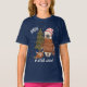 "BABY it's cold outside" declares the front of this cute shirt. A bewildered bear in a ski sweater and red and white striped Santa hat holds a lantern while snow falls around him. At his feet lies a little red fox snuggled in a wrap. A green pine tree is in the background. Cute for the Holiday season, but can easily be worn all winter long.