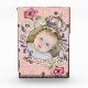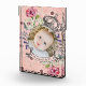 Cute Baby Keepsake Birth Date Custom Photo Block. This adorable design features a crown and flowers and a vintage style scroll that you can customize. It has a pink patterned background that is fashioned like vintage paper. Great to feature cute and loving photos of loved ones!