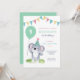 These cute birthday party invitations feature a cute baby koala wearing a party hat and holding a balloon with party flags decoration. Personalize the birthday party invites by adding your child's name, age, and party details.