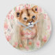 Cute Baby Lion Pastel Watercolor Spring Flowers Large Clock