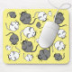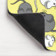 This very cute mouse pad has a bunch of gray and white baby mice against a yellow background.
