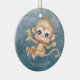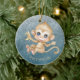 Cute Baby Monkey Banana Blue Glitter Personalize Ceramic Ornament
