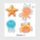 Cute baby octopus, starfish, jellyfish and crab. Custom vinyl stickers. Gift idea.