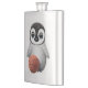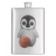 This adorable design features a small baby penguin with its foot on a basketball. The penguin is looking forward with its head tilted slightly giving it a cute and curious look. This sporty penguin design is perfect for all basketball fans.
