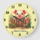 Cute baby pig nursery add name large clock