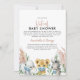 Cute gender unknown baby shower animals in masks covid virtual baby shower. White flowers botanical foliage and elephant, lion and zebra in face masks. Script text, part of a collection available in different color ways.