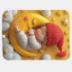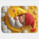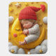 This adorable design features a cute sleeping baby resting on a crescent moon surrounded by soft clouds and golden stars. The warm yellow background and cozy night sky theme create a peaceful and dreamy atmosphere, perfect for baby nursery decor. This sweet illustration is ideal for baby blankets, nursery wall art, pillows, baby clothes, and baby shower gifts. A perfect design for newborn gifts, gender neutral nursery themes, and moon and stars nursery decorations.