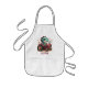 A personalized whimsical apron that merges cuteness with functionality. Picture a charming baby dinosaur at the wheel of a red cute miniaturized tractor, creating a delightful and imaginative experience for young ones.