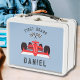 This lunchbox is super sweet and a lovely choice for the little racing car lover in your life. The text which appears on the front and back can be edited to suit so you can keep the 'FIRST GRADE' as-is or edit it and then you can include your little one's name or any other choice of text. The design features a red racing car with a checkered flag and the background is a soft blue.