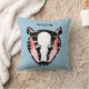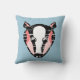 The face of a cute, black and white badger. The white on the badgers face has been highlighted with pink tones. There is a distressed look to the darker parts of this loveable badger face