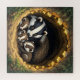 Cute puzzle with an ai illustration of a a mama badger and her babies all napping in their underground tunnel called a sett.