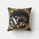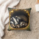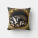 Cute throw pillow with an ai illustration of a a mama badger and her babies all napping in their underground tunnel called a sett.