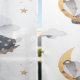 Create a peaceful, dreamy atmosphere with the Cute Badger Sleeping on Moon with Blanket Nursery Blackout Curtains. This charming watercolor design features an adorable badger sleeping on the moon with a cozy blanket, surrounded by soft space clouds and twinkling stars. The soothing white, charcoal grey, and light brown tones enhance the elegant minimalist trendy modern aesthetic, making it perfect for a safari-themed nursery. These cute blackout curtains bring a touch of dreamy fantasy to any kid's room, providing both style and comfort.