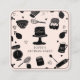 Cute Baker Pastry Chef Baking Utensils Pink Black Square Business Card