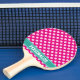 Cute ball pattern print ping pong paddle for table tennis chick. Personalized name or monogram ping pong paddle for table tennis. Sports game Birthday party gift idea for sporty men women and teen school kids (boy or girl). Add your own surname or monogrammed letter initials. Custom background color ie neon pink and turquoise blue. Fun for player, coach or club house. Also great as college dorm accessories for students. Unique Holiday presents for children, grandson, son, daughter, granddaughter, mom, sister, friend etc. Leisure equipment with novelty sports graphics.