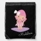Cute Ballerina Girl Monogrammed Script Drawstring Bag