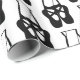 Wrapping paper with a black illustration of a ballet dancers slippers and her lower legs which are transparent allowing the color of the background to show through. Ballerina is standing on her toes, en pointe.