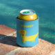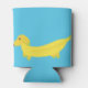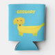 They'll be sipping their favorite beverages in style with this personalized can sleeve. The foam can wrap has illustrations of dachshund dogs made out of yellow bananas set against a bright blue background with a spot to add a name in matching yellow letters.
