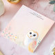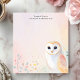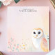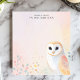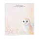 Add a touch of gentle wisdom to your notes with this personalized notepad. A charming illustration of a barn owl, with soft, pastel-colored feathers, perches in the lower-right corner. The light and airy design creates a peaceful and whimsical feel. Customize this notepad with your own text. Perfect for owl lovers, nature enthusiasts, or anyone seeking a touch of calm.
