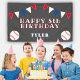 Cute Baseball Bunting Flags Kids Birthday Party Banner. The design has two baseballs and birthday party bunting flags in red, blue and white colors. Personalize it with your name and text and make your own birthday party banner. Great for a boy who loves baseball.