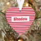 Cute Basic Red and White Stripes Custom Name Heart Ornament