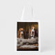Cute basset hounds reading newspaper grocery bag