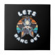 Cute Bat Hanging and Retro Sunset | Let's Hang Out Ceramic Tile