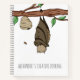 Great personalized notebook with an illustration of a bat sleeping beside a beehive. Personalize the text with your own message. Illustrated and designed by Patricia Alvarez.