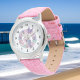 I was pleasantly surprised by the good quality of this watch. It's an easy size to wear on a small wrist and both the band and the watch are well made. I also liked the translucent case the watch is packaged in. The printing is crisp and clear and shows off my Create With Photos oyster flower design well.