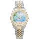 The watch is very nice, the picture is great and the watch looks like quality. The only problem I am having with it is that it is a little too large, and I also can't figure out how to open the clasp. No directions came with it. Very good. The printing is perfect and the watch keeps good time.