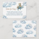 This cute baby shower books for baby enclosure card features a boy teddy bear flying a plane among fluffy clouds.