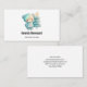 Business cards with an adorable illustration. A cozy bear with stars and sparkles in its fur. Standing beside a Christmas tree. Pastel blue-green color. Whimsical and cute.