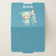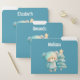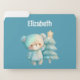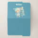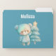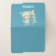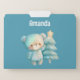 Folder trio with an adorable illustration. A cozy bear with stars and sparkles in its fur. Standing beside a Christmas tree. Pastel blue-green color. Whimsical and cute.