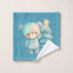 Towel set with an adorable illustration. A cozy bear with stars and sparkles in its fur. Standing beside a Christmas tree. Pastel blue-green color. Whimsical and cute.