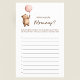 This adorable "Where Was the Mommy?" baby shower game features a sweet watercolor illustration of a baby bear holding a pink balloon. The text asks guests to guess where the mom-to-be was in each photo, with the person holding the most correct answers winning. It's a fun and engaging activity that adds a touch of whimsy to any baby shower celebration. The charming design is perfect for a woodland or bear-themed baby shower, creating lasting memories for the parents-to-be and their guests.
