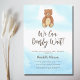 This baby shower invitation is decorated with a cute watercolor teddy bear and a blue sky.