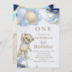 Cute Bear Balloon Abstract Blue Gold Photo Invitation