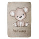 Cute Bear Burlap Rustic Name Watercolor Bath Mat