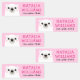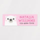 Waterproof property labels featuring a cute cartoon polar bear cub on a pink (or custom color) background with customizable name and telephone number. Great for labeling your belongings