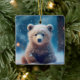 Cute Bear Cub In Snow Covered Forest Ceramic Ornament