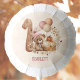Girl fall beary 1st Birthday Balloon featuring an adorable teddy bear in a pink hat, with pumpkins, balloons and big wooden number one. Easily personalize the name. - Kate Eden Art