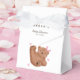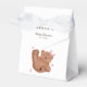 Cute and rustic girl's baby shower favor box featuring illustration of a baby bear on her back with pink bow and hearts.