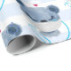 Wrapping paper with a cute illustration of a blue bear wearing a nurses hat with a little heart on it. Also wearing a protective face mask and has a blue stethescope too.