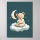 Cute Bear on Cloud Nursery Bedtime Wall Art