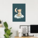 A sweet and calming nursery illustration of a cute teddy bear hugging a soft toy while sitting on a fluffy cloud under the moon and stars. This gentle bedtime artwork creates a peaceful atmosphere, making it perfect wall art for baby rooms, nurseries and children’s spaces designed for comfort and dreams.